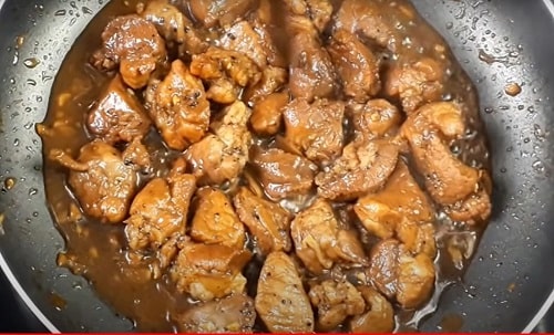 + Khi thịt đã săn đổi màu thì cho nước ướp vào.